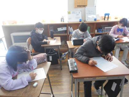 スタートタイムは計算練習でした。100マス計算を短時間で行う技能も大切ですが、10分間集中して行う「集中力」も高学年になるまえに身につけてほしいものです。