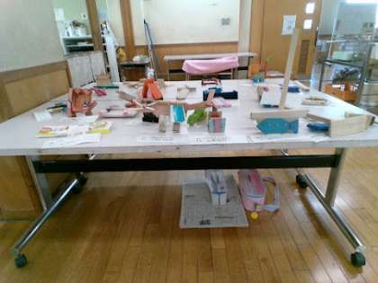 今回の図工はノコギリと、金槌を使って釘、木を使って動物を作ったり、