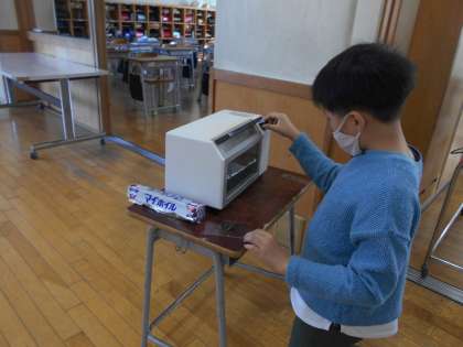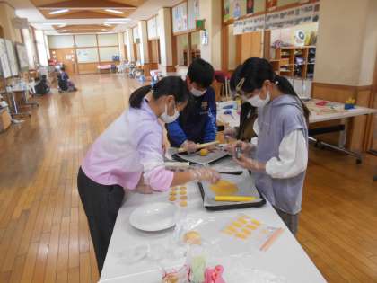 各学級、学習発表会当日に体育館入り口付近でイベントを行う予定です。今日はその準備を行っていました。
