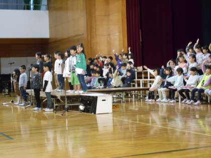 「大きな声で台詞を言いたい」「緊張するけれど、頑張る」と、朝からやる気満々な1年生。本日は、「できること いっぱい 1ねんせい」の発表をご覧いただきありがとうございました。
