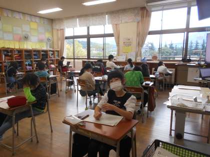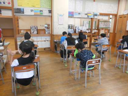 3枚目:リコーダーテストの様子です。「オーラリー」や「茶色のこびん」の楽曲について、自信がついた子供から聞かせてもらいました。明日以降、順次行う予定です。