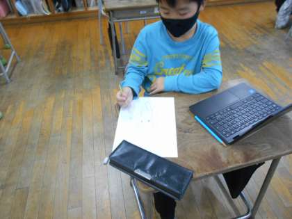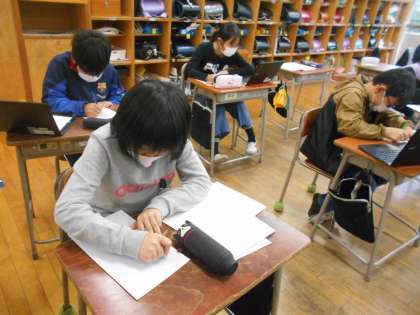 図画工作科では、「忘れられない気持ち」という題名で、自分の心に残っている出来事を絵に表し始めました。来週、再来週で完成を目指します。