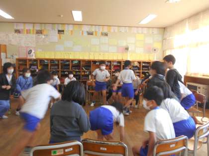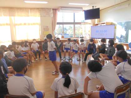 スタートタイムの様子です。個人面談週間があり、久しぶりのコミュニケーション活動です。友達と楽しんで活動することで、学習へ向かう勢いを朝からつけました。