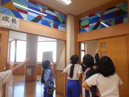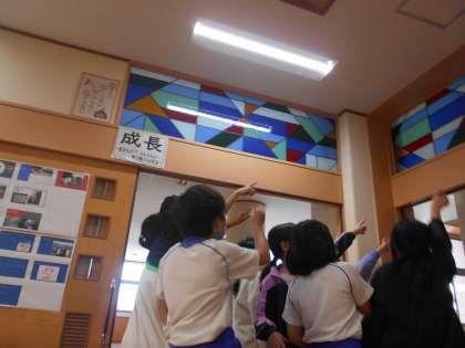 なかなかないなぁ・・・と思っていたところ、身近なところのデザインに使われているのを子供たちが発見しました。教室以外の場所や学校の外にもたくさんありそうです。親子でぜひ探してみてください。