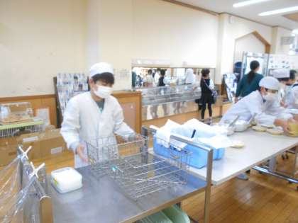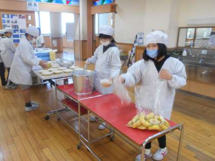 11月11日(金)4年生 給食準備の様子