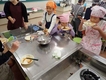 どのグループも、講師の方の協力のおかげもあって、おいしく仕上げることができました。自分たちの学習にどう生かしていくか、今後がとても楽しみです。