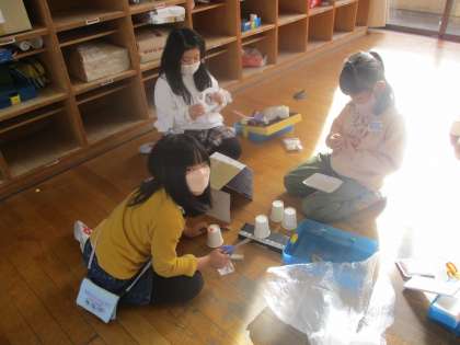 11月17日(木)2年生 生活科「ゴムゴムパワーのおもちゃを作ろう」 公開日 2022/11/18 更新日 2022/11/18 2年生 「うーん、うまくいかない」 そう言いながらも、何度も子供たちは挑戦します。 この学習では、おもちゃの作り方を自分で調べ、自分で作ってみる学習です。 うまくいかないことも学習の一つ。 何度も工夫して、作り直しています。 今日は、お悩み相談の時間がありました。 次回もみんなで聞き合いたいと思います。