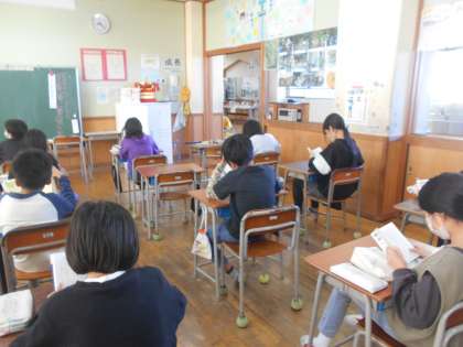 月曜のスタートタイムは学年読書です。読書の秋も後半になりました。どんな本を図書室で借りているのでしょうか? お子さんと話題にしてみてください。