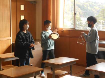音楽の様子です。今日は楽器を使って音楽づくりを行いました。