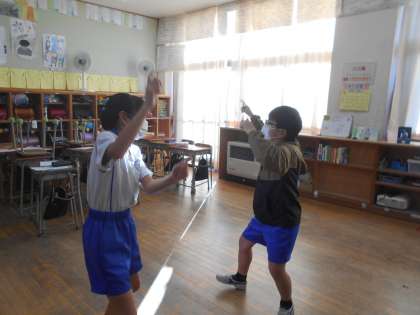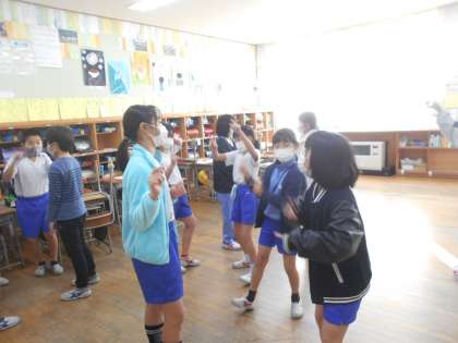 この学級は音楽に合わせておどりながら約10パターンの組み合わせで友達と交流していました。