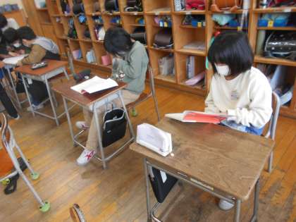 昨日の自学を見せ合ったり、問題を出し合ったりして、テストに備えていました。