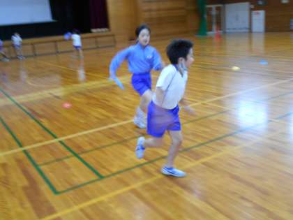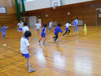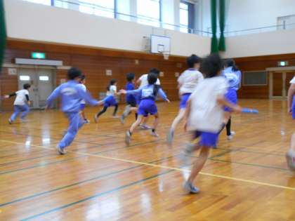 バトンパスの歩数を合わせたり、バトンのもらいかたを工夫したりしながら練習していました。