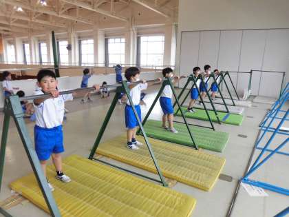 12月2日(金) 1年生 鉄棒運動 公開日 2022/12/02 更新日 2022/12/02 1年生 今日の体育は、鉄棒運動に取り組みました。小学校に入学して初めての鉄棒運動だったので、最初は緊張した面持ちの子どもたちでしたが、少しづつ体が慣れてきて、最後には「もっとやりたい!」と意欲を高めていました。