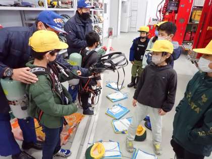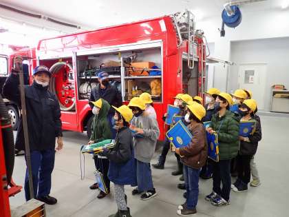 社会「火事からくらしを守る」の学習で、大沢野消防署に行ってきました。消防士の方が丁寧に消防車や救助工作車、救急車などの説明をしてくださいました。子供たちも、実物に触れることで、理解がとても深まったようです。