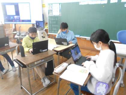 国語の様子です。先日まで学習した物語文の紹介をパソコンでつくっています。