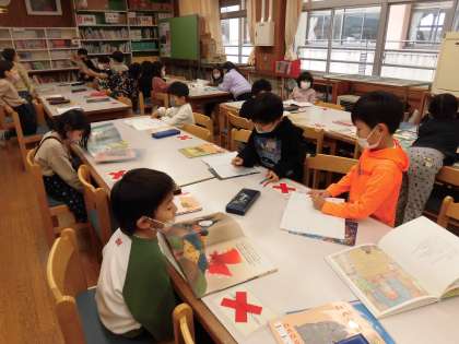 国語の時間は、「むかしばなしをよもう」の学習に取り組んでいます。今日は図書室に行って、司書の先生にグリム童話「金のガチョウ」の読み聞かせをしていただきました。その後、自分が読んでみたい外国の昔話の本を手に取り、物語を楽しみました。