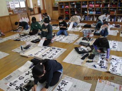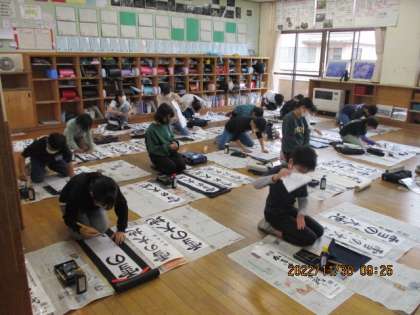 いよいよ書き初め練習が始まりました。今年の5年生の書き初めは「雪の大地」です。字の形やバランスをとるのが難しいですが、一画一画丁寧に練習して、自信をもって1月を迎えられるように頑張ります。