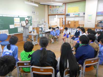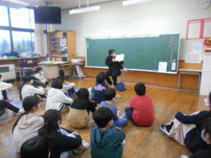 今日のスタートタイムは4年生への読み聞かせの日でした。