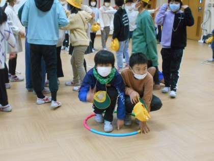 写真は「うさぎの引っ越し」というゲームの様子です。