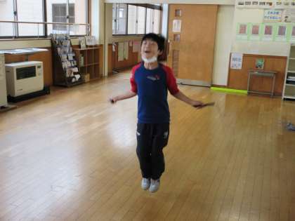 クロームブックで入力する「なわとびカード」の記録を更新するために、練習を頑張っている子供たちです。