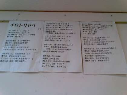 これは、5年生の学年目標「イロトリドリ」にちなんで、ゆずのイロトリドリという歌です。これをきくといつも元気が出るいい曲です。皆さんも聞いてみてください。