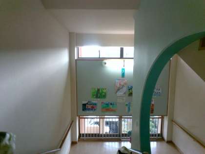かいだんに えが かざってあります。
