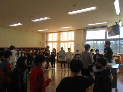 もう一つの学級は仲間との息を合わせるゲームをしていたようです。