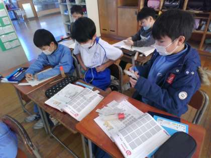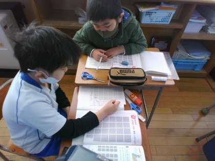 2年生では、算数の進み方を3つのコースに分けて、子供たちが選べるようにしています。今日は、3学期最初の算数の授業があり、1000より大きい数を工夫して数えました。