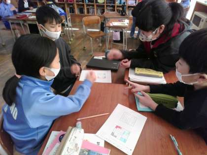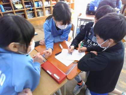グループで楽しくじんとりゲームをしながら、どうやって広さを比べたらよいか、考えました。