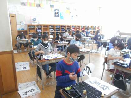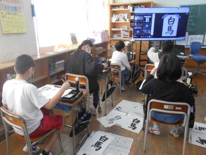 先日の書き初めの練習の成果もあり、字によって書く大きさを変えることを子供たちは実感を伴って理解しており、スムーズに「白馬」を書き上げました。