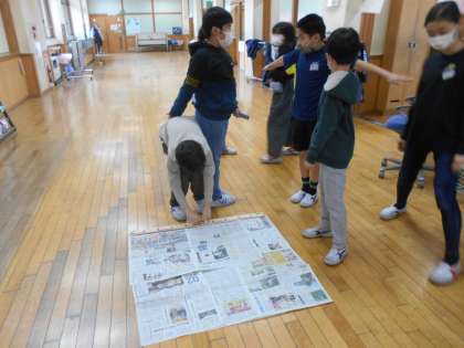 実際に新聞紙でその面積をつくって、のってみました。