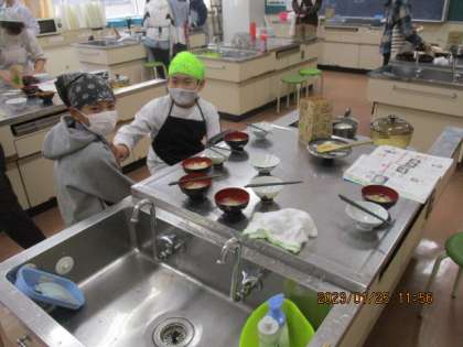 今日の調理実習をきっかけに、家でも家族とご飯やみそ汁を作ってみる1組の子たちがいると嬉しいです。