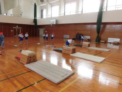 跳び箱運動に苦手意識のある子どもたちも、楽しそうにジャンプしたり、着地したりして跳び箱に慣れ親しむことができました。