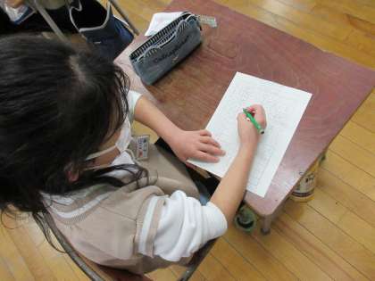勉強係の子供たちが、みんなのために九九プリントを作ってくれました。3年生で学習するわり算にも挑戦できるプリントまで用意してあり、「やってみたい!」と朝から意欲満々の子供たちでした。
