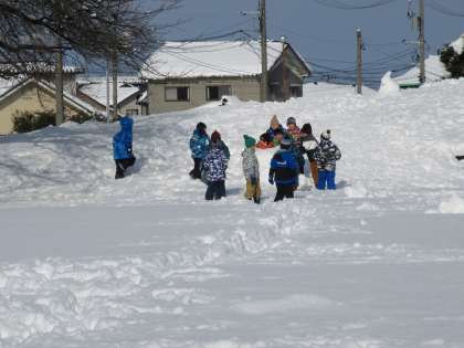 今日は、とてもよい天気で、雪遊び日和でした。子供たちは朝からこの時間を楽しみにしていました。