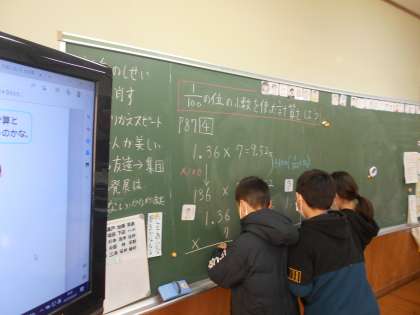 今日は100分の1の桁がある小数が混じったかけ算を行いました。