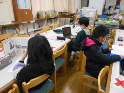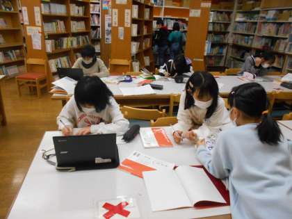 今日は図書室で関連書籍を見つけて、調べ活動を行いました。
