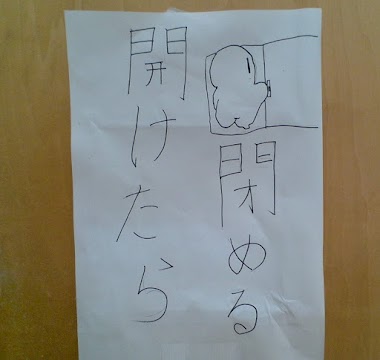 「開けたら閉める」という張り紙を撮った写真です。