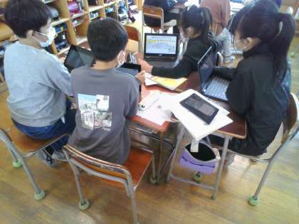 「長く続いた戦争と人々のくらし」の学習で、関心をもったことについてスライドにまとめて発表しました。出来事から感じたことを大切にして、自分たちの思いを仲間に伝えていました。
