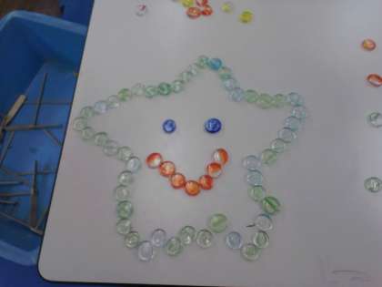 おはじきで、いろんなものを つくっています。