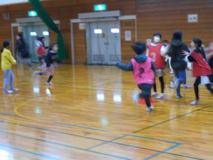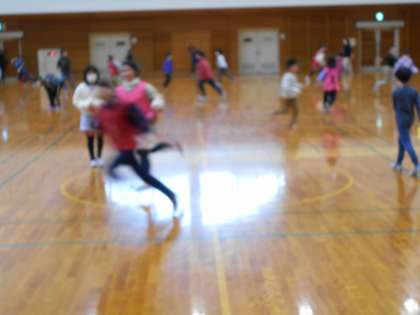 ケイドロの様子です。オニの児童も逃げている児童も、仲間同士で協力しながら捕まえたり逃がしたりしていました。