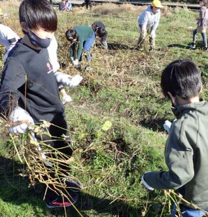 給食のメニューに「打ち豆汁」がありました。打ち潰した大豆が味噌汁の具となっている食べ物です。丸々とした大豆ではなく、敢えて豆を潰しているのです。形は異様ですが、乾燥させ保存食とするために必要なようです。3年生は、総合的な学習の時間「大豆食品の研究」の中で、豆腐や豆乳づくり、きな粉づくり等を体験しています。国語の教科書に「姿を変える」という説明文があり、大豆が様々な形に姿を変えていく加工食品についての話を、実際に体験していっているのです。