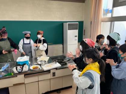 みんなおいしくできたようで、満足そうな表情をしています。