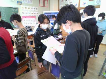 中学校へ進学して入りたい部活、頑張りたい学習等を友達と英語で伝え合いました。英語での会話のやりとりがとても上手です。