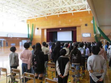 4年生との卒業式合同練習が始まりました。式に参加する態度からも、高学年としての意識が感じられ、4年生に堂々とした姿を見せていました。指導してくださった先生からも、5年生の立派な態度をたくさん褒めていただきました。
