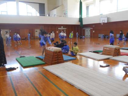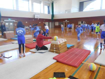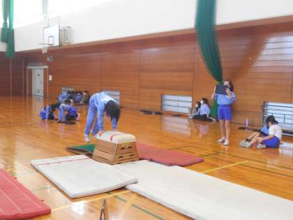 卒業式に向けて体育館の割り当てが変わり、しばらくは学年の合同体育を行います。