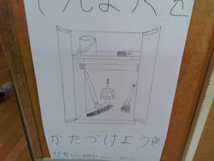 みなさんはそうじをしたあとほうき、ちりとり、などをきれいにせいとんしていますか?教室をきれいにそうじしたあとほうき、ちりとり、などもきれいにせいとんするといいですね。