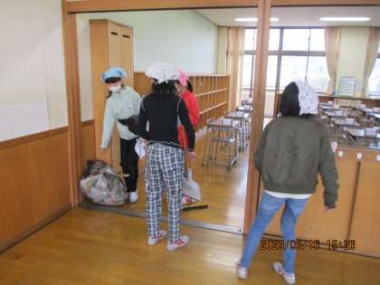 いよいよ卒業式前日となりました。他学年より一時間多く残って準備をする5年生は、張り切って掃除や会場作りに協力していました。下校していく6年生が、私たちに「ありがとうございます」と声をかけてくれたのが心に残りました。明日巣立っていく6年生、素敵な一日になりますように。