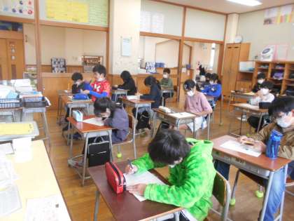 今朝のスタートタイムは、今学期最後の漢字ミニテストでした。