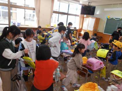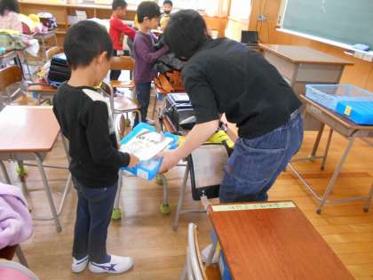 今日は1年生のために、6年生が朝から支度の手伝いをしました。名札をつけてあげたり、しまう場所を教えてあげたり・・・。支度が終わって暇そうにしている一年生を見つけると、じゃんけん大会を開いて楽しませている姿も見られました。「1年生、すっごくかわいい!」と癒やされている6年生もいました。